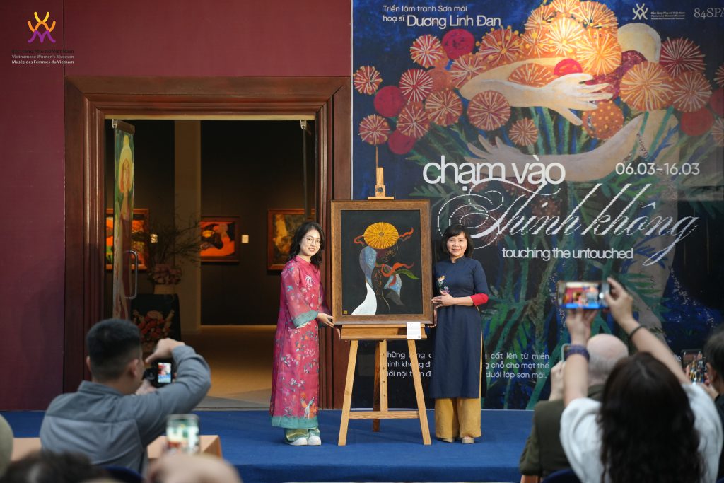 Ngày 6/3/2026, tại Bảo tàng Phụ nữ Việt Nam, triển lãm tranh sơn mài “Chạm vào Thinh không” của nữ họa sĩ trẻ Dương Linh Đan chính thức khai mạc, mở ra một không gian nghệ thuật giàu chiều sâu cảm xúc và trải nghiệm thị giác. Triển lãm do Bảo tàng Phụ nữ Việt Nam phối hợp với tổ chức nghệ thuật 84SPACE thực hiện, là một trong những hoạt động của bảo tàng trong tháng 3, hướng tới tôn vinh sự sáng tạo và những tiếng nói nghệ thuật đa dạng của phụ nữ.